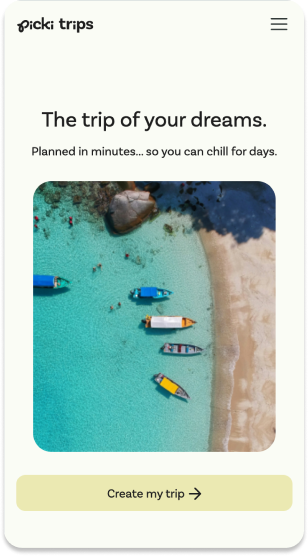 Picki is here to make trip planning more enjoyable. We help you create travel plans tailored to you—your unique needs, interests, and preferences. Whether you’re all about planning every detail or just want to hit “go” on an epic trip, Picki has you covered.